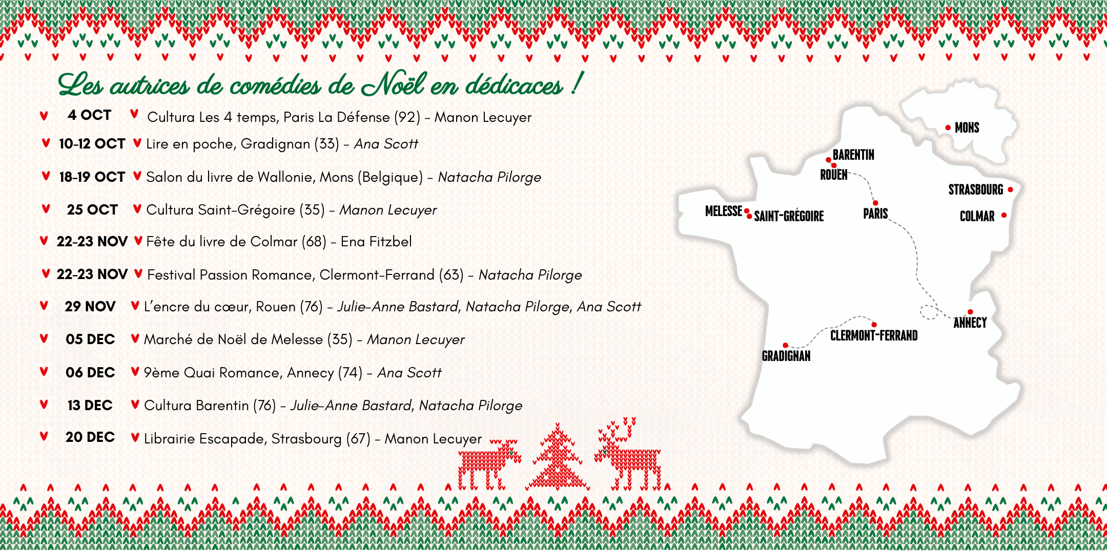 Rencontrez les autrices de comédies de Noël J'ai Lu ! 06/10/2025 - 21/12/2025 Auteurs associés Julie-Anne Bastard Ena Fitzbel Manon Lécuyer Natacha Pilorge Ana Scott